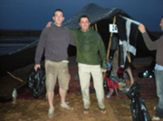 smelly dirty runners lying in their sleeping bags on the desert floor